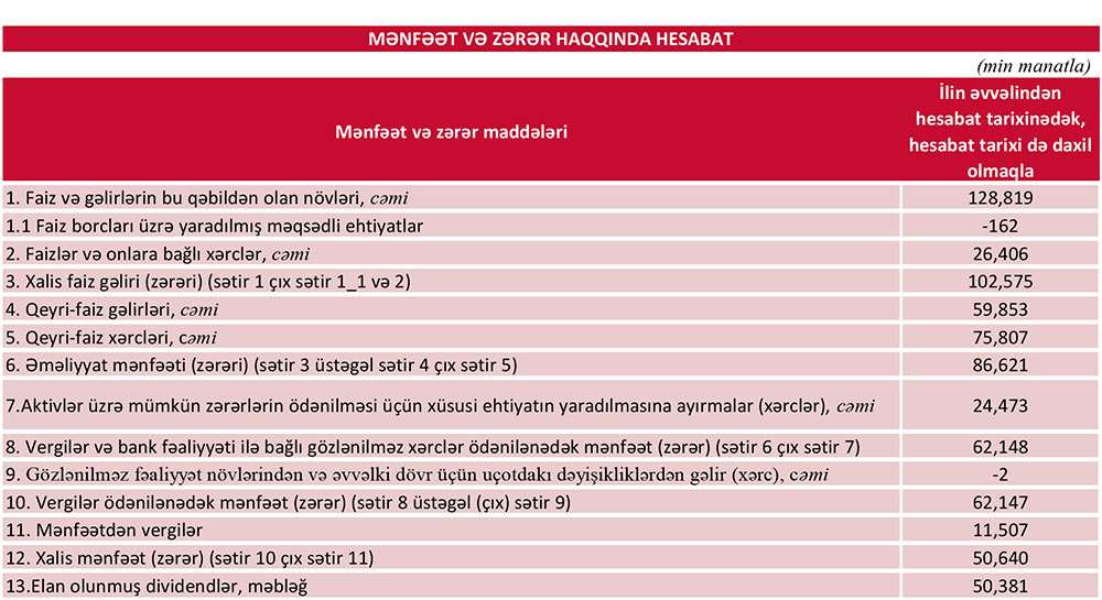 Azərbaycanın ən böyük özəl bankından 50 milyon manatdan çox xalis mənfəət!