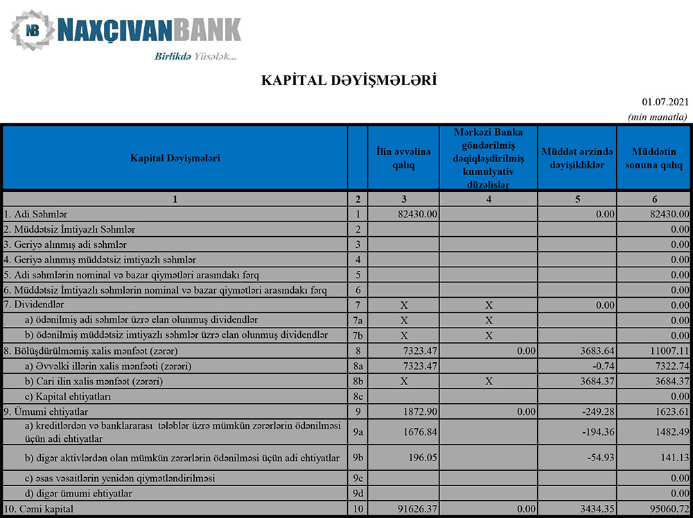 30 İyun 2021-ci il tarixində "Naxçıvanbank" 88 milyon 828 min manat məcmu kapitala malik olub.