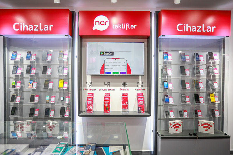 Qeyd edək ki, “Nar” mağazasında ziyarətçilərin müasir üslubda məlumat və xidmət alması təmin edilib. Mərkəzdə nömrə üzərində əməliyyatların aparılması, satışı da daxil olmaqla, müxtəlif növ xidmətlər təqdim edilir. Bundan başqa, yenilənmiş “Nar” mağazalarında mobil telefonların, cihazların və müxtəlif aksesuarların satışı da həyata keçirilir.