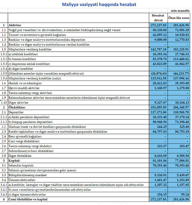 Qeyd edək ki, bankın Məcmu kapitalı 80 milyon manat təşkil edir.