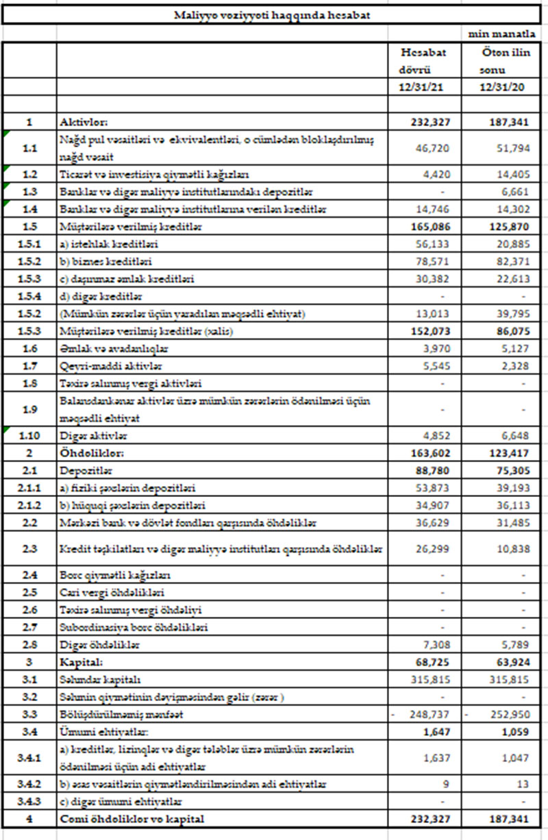 "VTB Bank (Azerbaijan)” ASC 2021-ci il ərzində aktivlərini 24% - 232 milyon 327 min manata qədər artırıb.