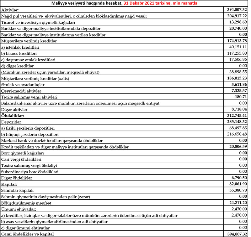 “Yapı Kredi Bank Azərbaycan” 2021-ci ili 6 milyon manata yaxın əməliyyat mənfəətilə başa vurub.