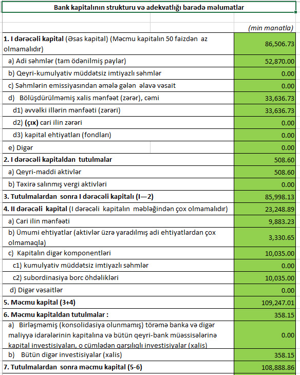 31 Mart 2022-ci il tarixində “Bank of Baku” 108 milyon 889 min manat məcmu kapitala malik olub.