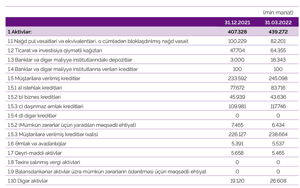 Dövlət bankı Azər Türk Bankın 01 aprel 2022-ci il tarixinə aktivləri ötən ilin müvafiq dövrü ilə müqayisədə 32% artaraq, 439,2 milyon manat təşkil edib.