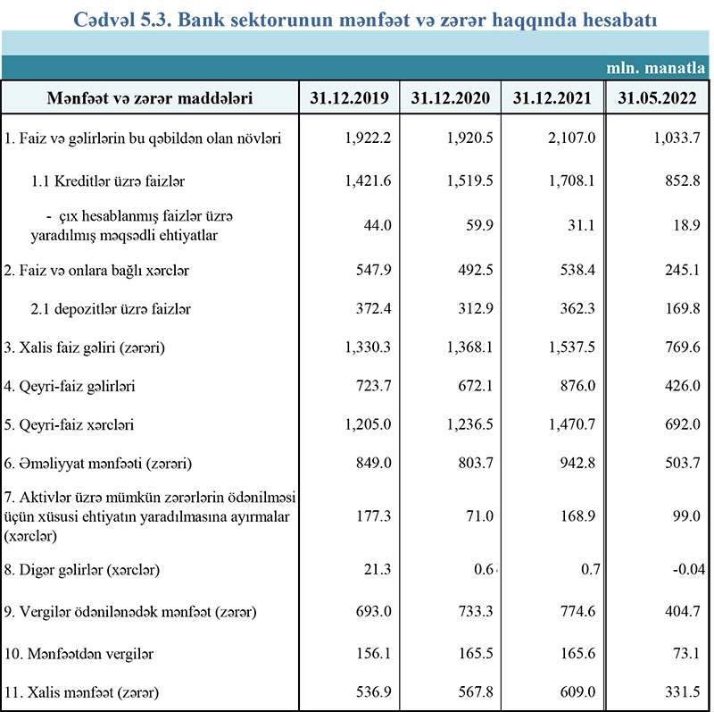 Azərbaycanın bank sektoru 2022-ci ilin ilk 5 ayını 331,5 milyon manat xalis mənfəət ilə başa vurub.
