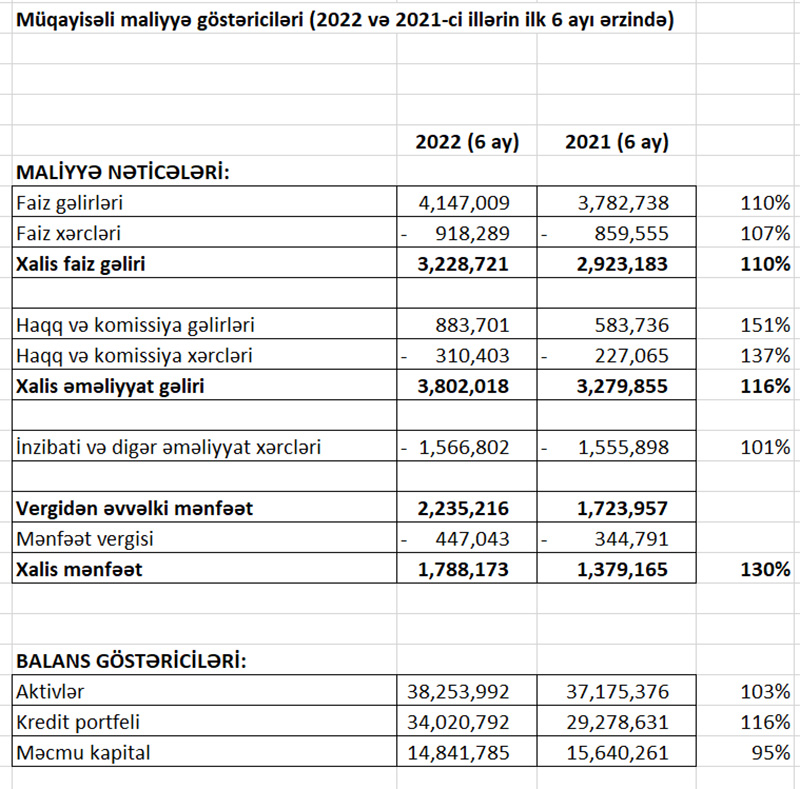 BOKT “Embafinans” QSC 2022-ci ilin birinci yarısı üzrə (yanvar-iyun) əsas maliyyə göstəricilərini açıqlayıb.