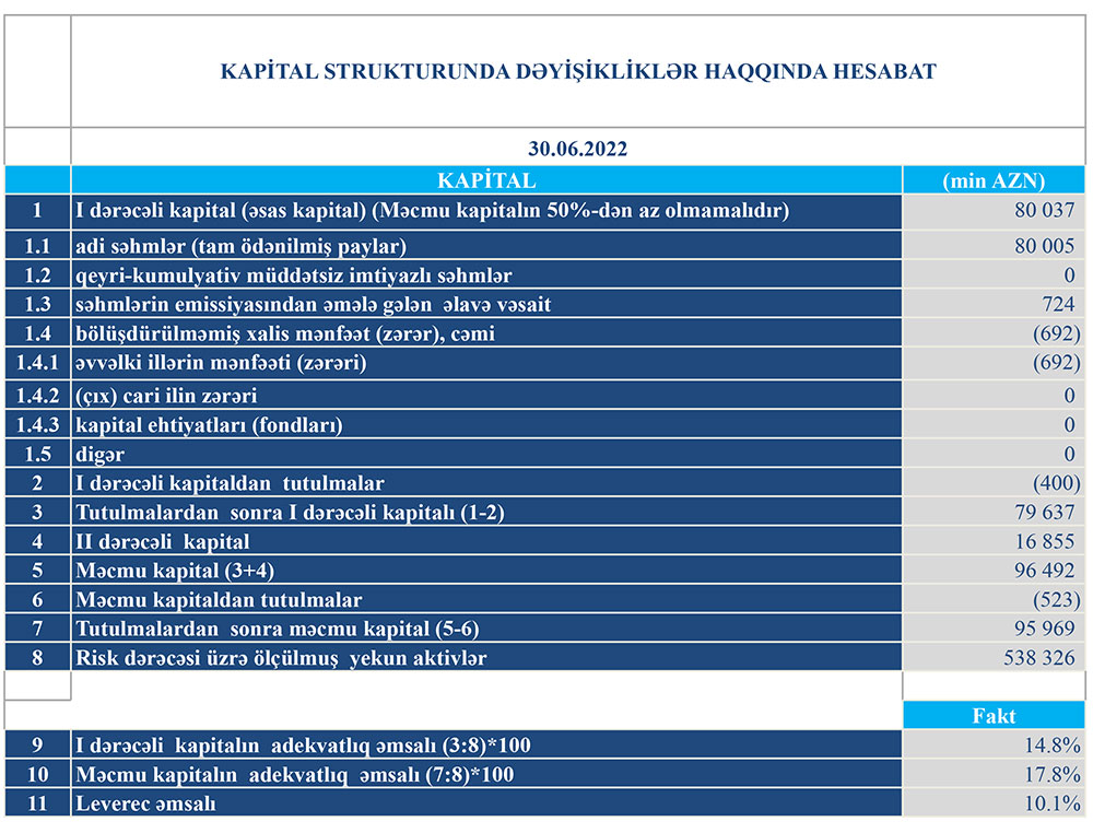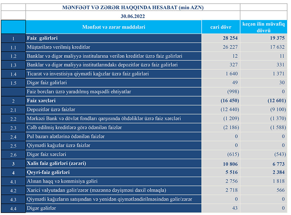 Bankın yaydığı press-relizdə bildirilir ki, real sektorun dəstəklənməsi istiqamətində aktiv fəaliyyətini davam etdirən Bank cari ilin ilk yarısını 1,7 mln. manat mənfəətlə başa vurmuşdur.
