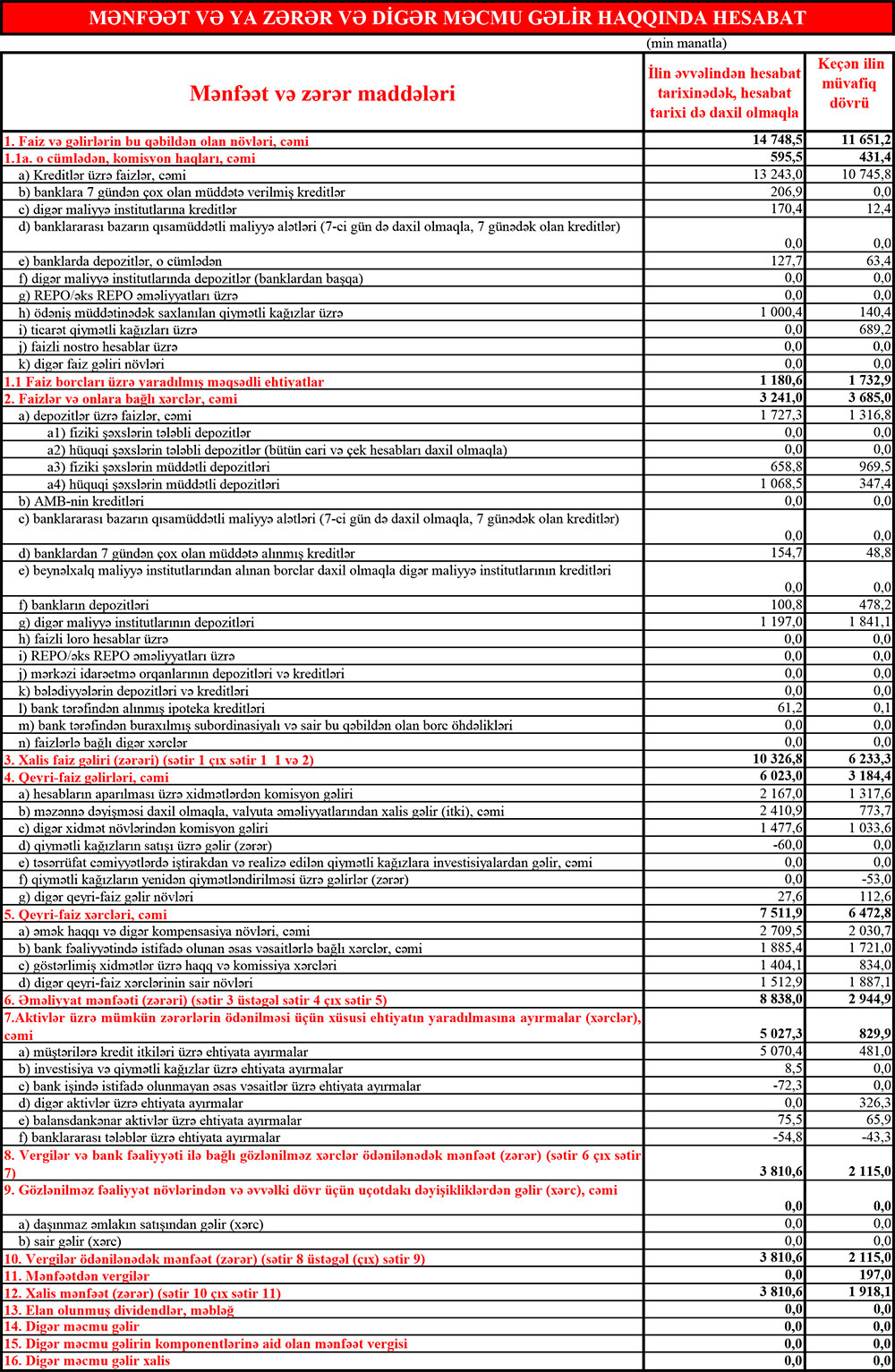 Bankın yaydığı press-relizdə bildirilir ki, bank xalis mənfəətini ötən ilin müvafiq dövrü ilə müqayisədə 2 dəfədən çox artıraraq 3.8 mln manata çatdırmışdır.