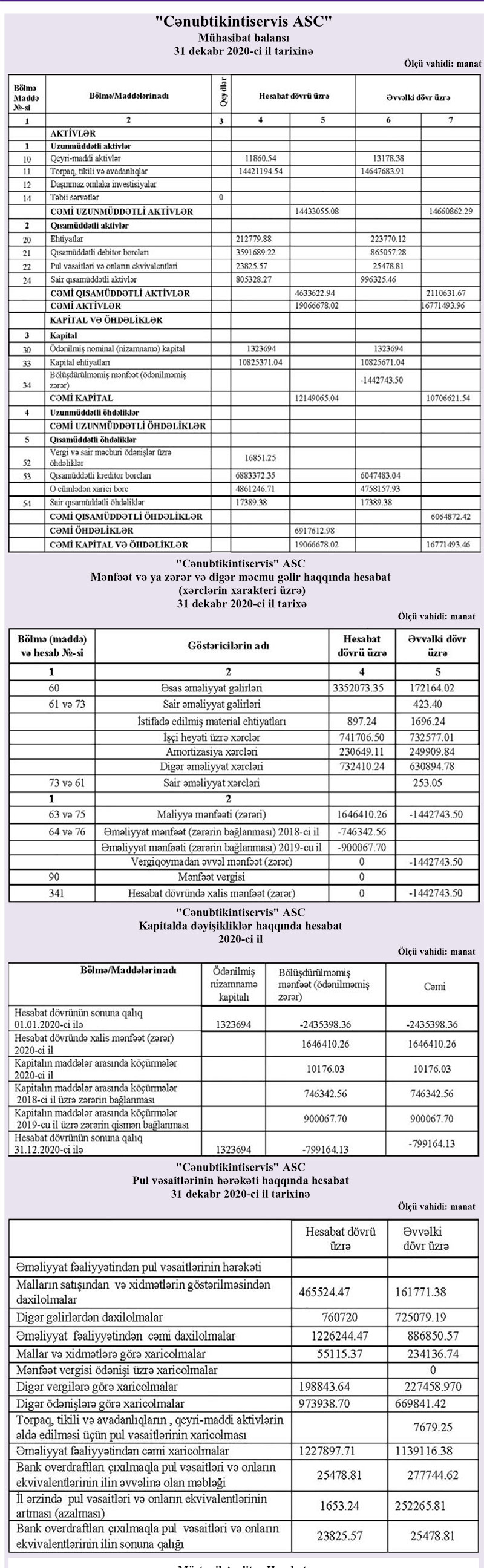 "Cənubtikintiservis" 2021-ci ili xalis mənfəət ilə başa vurub