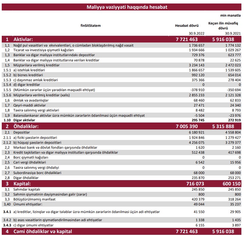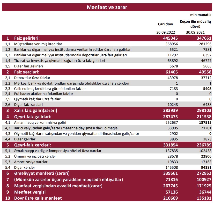 Bank 2021-ci ilin yanvar-sentyabr dövrünü 135 milyon 181 min manat xalis mənfəət ilə bağlamışdı.