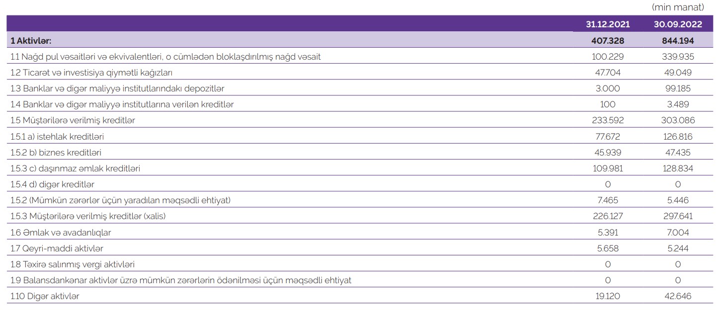 Aktivlərin artması nağd pul vəsaitləri və ekvivalentlərinin, müştərilərə verilmiş kreditlərin və digər banklarda yerləşdirilən depozitlərin artması ilə əlaqədardır.
