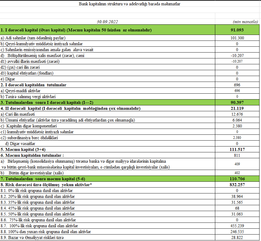 30 Sentyabr 2022-ci il tarixində "Rabitəbank" ASC 110 milyon 706 min manat məcmu kapitala malik olub.