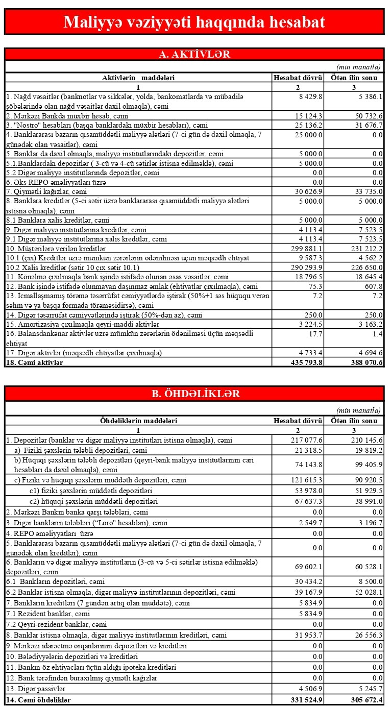 Qeyd edilib ki, 3-cü rübün maliyyə hesabatının göstəriciləri bankın istər hüquqi, istərsə də fiziki şəxslərin etimadını qazanmağa davam etdiyini isbat edir. Göstəricilərə əsasən fiziki və hüquqi şəxslərin müddətli depozit portfelində 34%-ə yaxın artım müşahidə edilir.