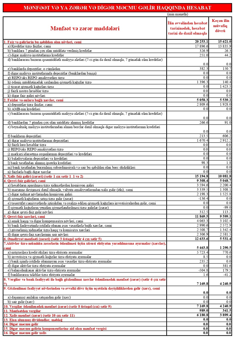 Bankın yaydığı press-relizdə bildirilir ki, 9 aylıq müddət ərzində bankın xalis mənfəəti 2021-ci ilin müvafiq dövrü ilə müqayisədə 58%-dən çox artaraq 6 mln. manatı keçmişdir.