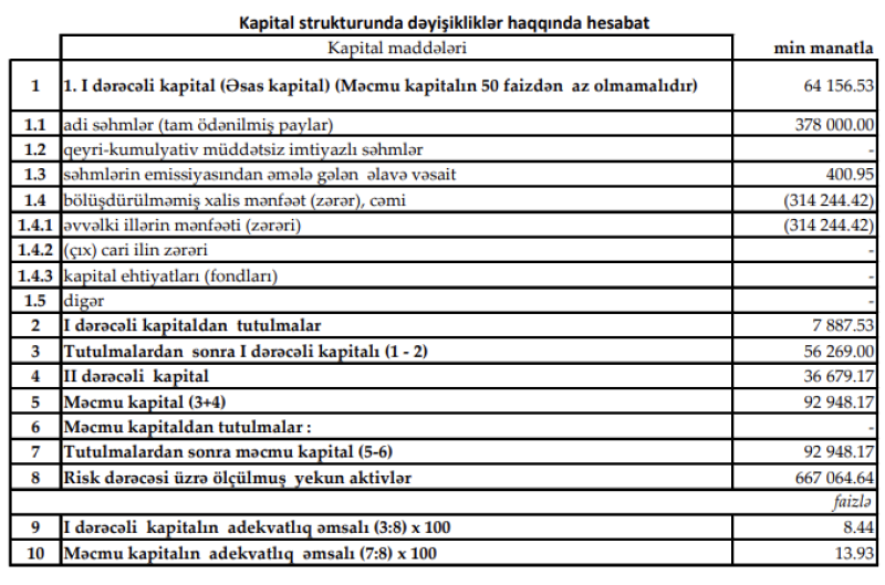 30 Sentyabr 2022-ci il tarixində "Yelo Bank" 92 milyon 948 min manat məcmu kapitala malik olub (31 Dekabr 2021-ci il tarixində 62 milyon 390 min manat idi).