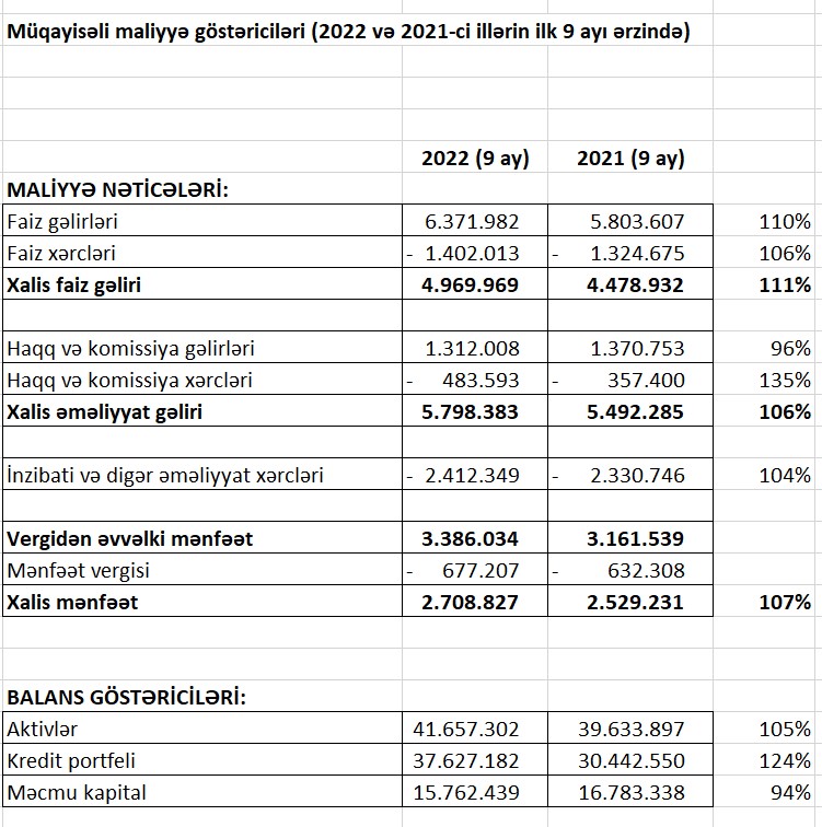 "Embafinans"ın kredit portfeli (müştərilərdəki cəmi kreditlər) 2022-ci ilin 9 ayında 2021-ci ilin eyni dövrü müqayisədə 24% artaraq 37 milyon 627 min manata çatıb.