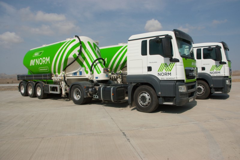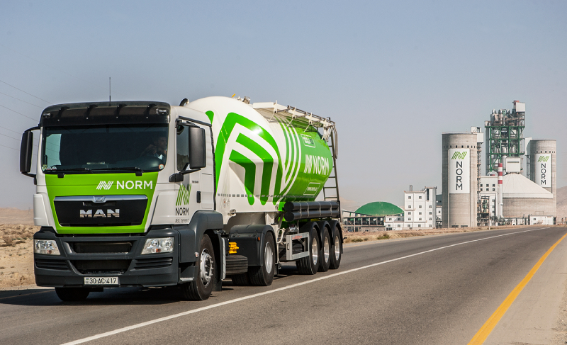 "Bu siyasətə uyğun olaraq, Qarabağda həyata keçirilən layihələr üzrə sement təchizatında yubanmaların qarşısının alınması və davamlılığın təmin edilməsi məqsədilə “Norm” ASC tərəfindən Avropa istehsalı olan və Avro 5 standartının tələblərinə cavab verən 12 ədəd əlavə yük maşını alınıb. Unikal dizayna və yüngül çəkiyə malik olan, yük kompressorları və rəqəmsal qoşquya nəzarət sistemi ilə təchiz olunan bu nəqliyyat vasitələrində sementin boşaldılması zamanı təhlükəsizlik və maksimum səmərəlik təmin olunur. Ən son texnologiyaların tətbiqi ilə istehsal olunan maşınlar və qoşqu vasitələri çətin yol şəraitinə dayanıqlı olub sürücülərin rahatlığı üçün əlverişli imkanlara malikdir".