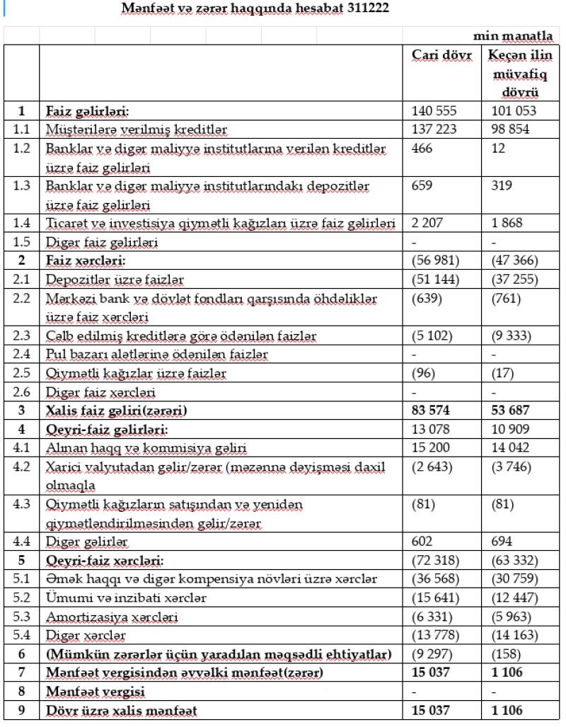 Daha bir bank ötən il yaxşı qazanc götürüb - XALİS MƏNFƏƏTİ 14 DƏFƏ ARTIB