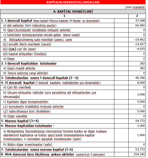 Marja xəbər verir ki, ötən il Bankın cəmi əməliyyat gəlirləri 32 milyon 37 min manat, cəmi əməliyyat xərcləri 31 milyon 595 min manat, gəlirlər xərcləri üstələdiyindən əməliyyat mənfəəti 442 min manat təşkil edib.