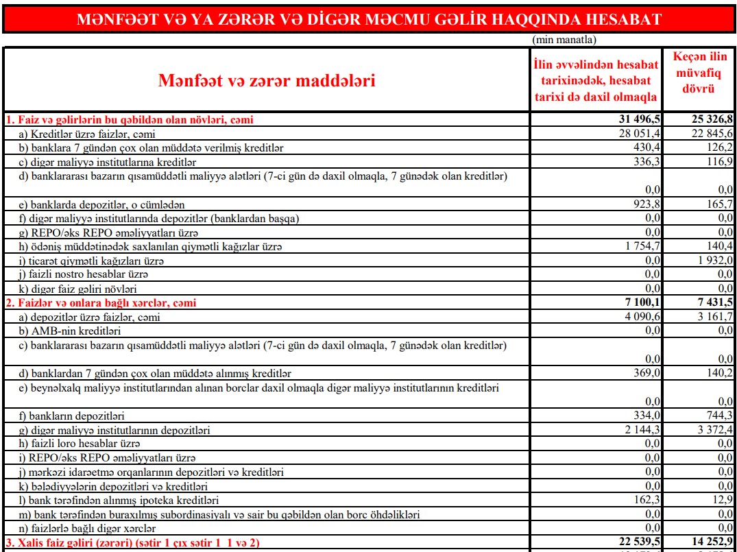 Ümumi olaraq hesabatlara əsasən bank 2022-ci il ərzində əsas maliyyə göstəriciləri üzrə illik fəaliyyətini uğurla tamamlamışdır.